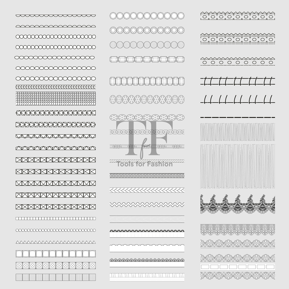 54 Illustrator application brushes (lace, elastic, rope, fringes, sequins, etc.)