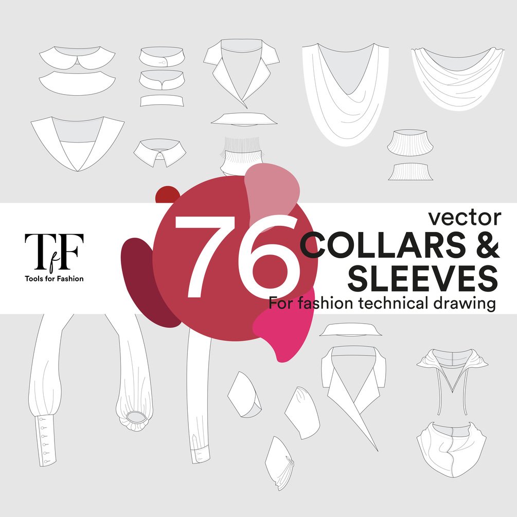 Illustrator editable file with 76 vector objets: collars and sleeves for woman clothing.