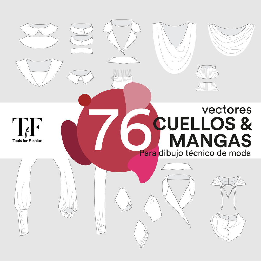 Archivo Illustrator con 76 objetos vectorizados cuellos, solapas y mangas para ropa de dama.
